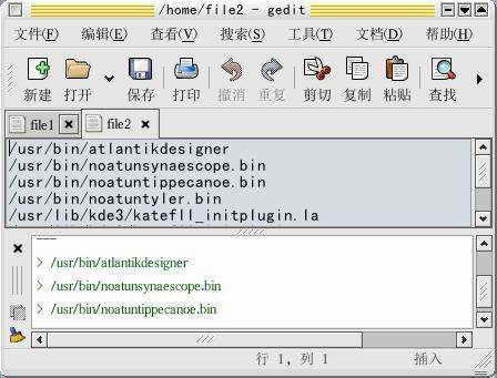 在gedit下面的输出窗口中上半部分是不同的文件,绿色部分就是这两个软件包中相同的文件。这样在卸载kdegames-3.1-4这个软件包之前先将这些相同文件备份到其他目录中,然后使用rpm -e --nodeps kdegames-3.1-4来强行卸载软件包,nodeps是不进行依赖关系检查的参数,然后将备份的文件放回原来的目录。这样这些小游戏就被卸载掉了,而且也不会影响到所依赖程序的使用。