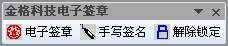在这个工具条上我们可以看到三个项目,分别是“电子签章”、“手写签名”和“解除锁定”。