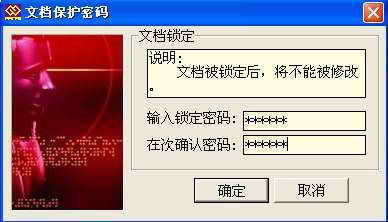 右击签名选择“锁定文档”后,就会弹出一个如图6所示的窗口。在“输入锁定密码”处设置一个密码,然后在“再次确定密码”处第二次输入(此处软件有一个Bug,“再”字错写为“在”),最后点击“确定”按钮就OK了。这样设置后别人就无法对文档进行编辑了,只有知道密码的人才可以修改文档。