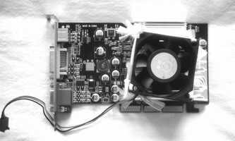 笔者先前曾经采用过破解驱动程序的方法进行超频。发现这款显卡在超频后确实可以轻松达到甚至超过R9600标准版的水平,但散热片在超频后也变得愈加烫手。由于显卡采用的是被动式散热,本来以为超频到如此水平之后,散热片的温度比较高是很正常的事情。但再进行更高程度的超频后,就发现显卡运行3DMarK2001SE时出现死机状况。被动式的散热条件显然无法解决大幅度超频所带来的热量增加问题,加装风扇改造为主动式散热是不可回避的解决方案。