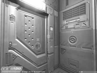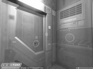 这种金属门和墙面在游戏中到处可见,凹凸贴图也是DOOM3的一大特色
