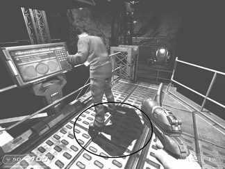 打开“Enable Shadows”,阴影存在于工程师的脚下,DOOM3中的阴影大多是这种泾渭分明的硬阴影