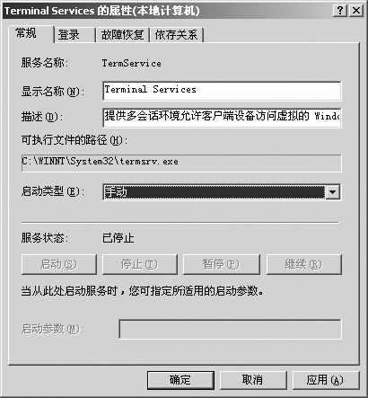 关闭服务器中的3389端口的方法很简单。在Windows 2000或Windows 2003中,进入控制面板,然后选择“管理工具”中的“服务”,在弹出的服务列表中,选中“Terminal Services”,将该服务的启动类型改为“手动”(图1),然后停止这个服务就可关闭3389端口了,此时想安装什么远程协作软件全看你自己的意愿了。
