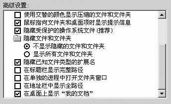 很多人都使用一种简单的办法来保护和隐藏自己的重要文件:选择“不显示隐藏的文件和文件夹”(图2),然后将重要的文件或文件夹的属性设为“系统或隐藏文件”,从而使文件在他人的眼皮底下消失了。这对江湖中的新手来说是非常有效的方法,但对于鹿采薇这样的黑客,这却是不堪一击的。只要选定“显示所有文件”,一切便全部展现在眼前了。