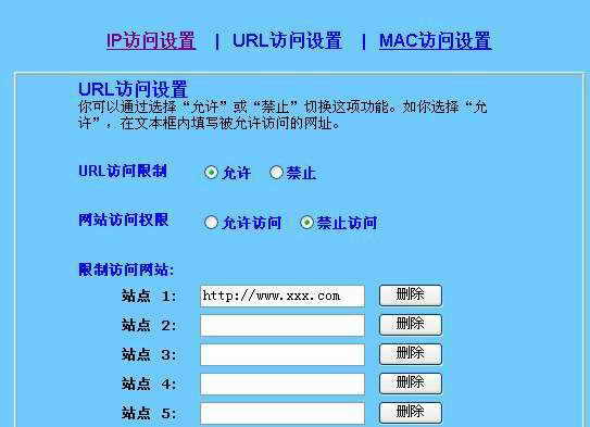通过URL访问控制功能可以对URL信息进行过滤,设置局域网中计算机只能访问或禁止访问的网站,这样可以防止用户访问不健康或不安全的网站。
