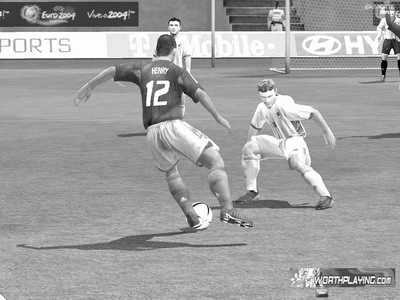 FIFA系列中最新作EURO2004的过人动作已经非常逼真了:看上去似乎要往左边走,下一步其实是向右边突破。