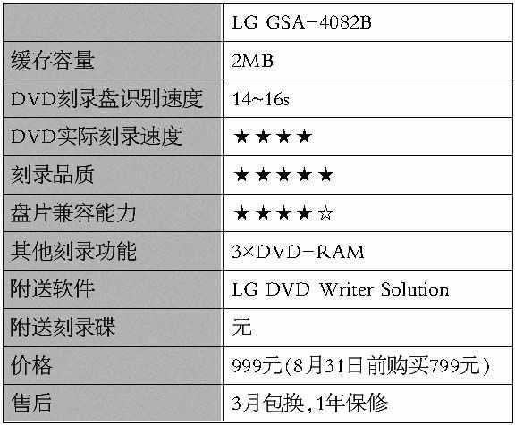 LG的产品可说是覆盖各个领域,而在光存储领域,它也是相当知名的。GSA-4082B 是一款Super Multi DVD Rewriter机型,不仅支持CD-R、CD-RW、DVD±R和DVD±RW的刻录,还支持3×的DVD-RAM刻录。不过对于国内用户来说,DVD-RAM刻录似乎没有实际意义。