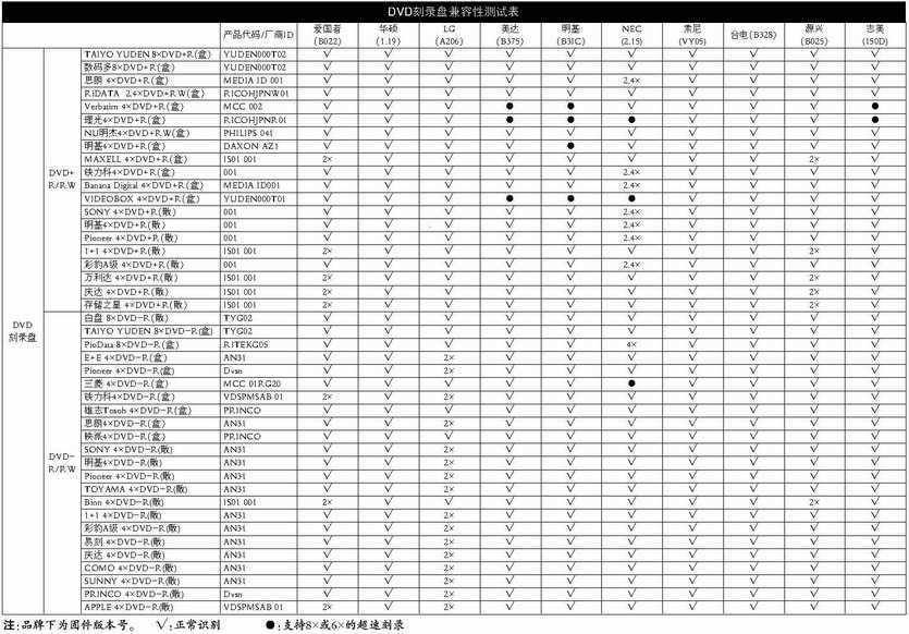 在此次评测中,我们的感受是以BTC系列产品为代表的中国台湾地区产品的读盘能力略强于日系产品。而同为使用优质盘片,LG和日系产品的刻录品质则更胜一筹。不过,台湾地区厂商中,宇极科技(志美的就是它做的)、明基等的产品在刻录品质上也有不俗表现。在应付质量较差的高速盘时,部分刻录机出现了刻录失败的现象,而另一部分刻录机刻录的盘片无法通过高速PI/PIF检测,还有部分刻录机对付这种盘片采取了主动降速的方式,所以出现了“识别为8×,能够选择8×刻录,但实际刻录时,仅有6×或4×”的现象。不过这样也会有消费者会抱怨“为什么不直接识别为低速?害我们买了那么多盘,又达不到8×”。这一方面,LG做得非常好,它识别为8×的盘片,都能以8×刻录,而且基本能够读取,这也是我们赞扬它刻录品质好的一个重要原因。而且,LG无论在DVD+R/RW和DVD-R/RW刻录上,品质都相当出色。