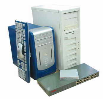 随着网吧的规范,越来越多的品牌电脑厂商开始为网吧提供相关产品甚至整体解决方案。我们此次拿到的是新蓝科技有限公司的网吧电脑,包含了一台用作网吧服务器的电脑(海尊7907,以下简称服务器),一台客户机(商锐6803),除此以外,还有一台24口交换机和一台SOHO路由器(连接交换机使用),我们主要对服务器和客户机进行了评测。