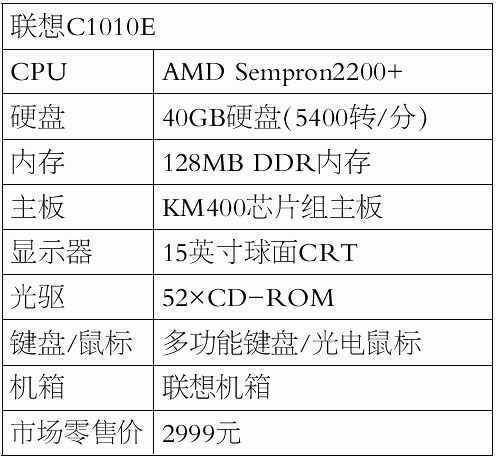 我们最常用的办公软件Office2000、网络浏览器IE6由联想家悦C1010E运行都是不成问题的。至于运行如RealONE、Winamp、Foxmail、QQ之类的软件更是不在话下。对于政府部门的电子政务建设、中小学的信息技术普及教育、商业部门的文档管理、数据处理以及会计电算化、家庭用户的简单娱乐,这款电脑不但可以胜任,甚至还有余力。