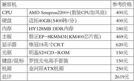 毫无疑问,以联想为首的品牌机厂商掀起的这场风暴核心在于“低价”,而价格历来都是兼容机与品牌机抗衡的法宝。如今面对如此低价的品牌机,兼容机在价格上还有优势吗?下面,我们还是以这次“低价风暴”的龙头联想家悦C1010E为参照,来看一下兼容机是不是还具有价格上的优势。