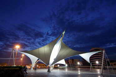 图3《UFO》拍摄的是一个城市景观,时间大约是晚上7∶30左右,整个构图主体景物仅占画面1/3,把更多画面空间留给天空,利用广角透视畸变使画面周围的灯柱向中间挤压,再加上天空中大片翻滚的云,地上星星点点的灯光,整个景物就好像是一艘的UFO战舰,突出蓄势待发的视觉效果。这样的效果在非超广角摄影中无法充分再现。