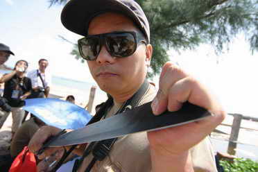 广角镜头因为结构的特点,具有近大远小的效果,因此当被摄物体离镜头比较近的时候,摄出来的物体发生变形,得到夸张、有趣、幽默的效果(图5)。该图摄于一次外拍活动,摄友正拿着一把去甘肃采风买回来的刀在把玩,笔者于是换上广角镜头,凑到大约30cm处,按下快门,因为距离很近,所以产生了较强烈的变形,原本英俊的朋友变得凶悍无比,形成了一幅比较有趣的花絮照片。
