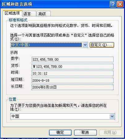 在Windows XP中,区域和语言选项是一个非常重要的组件,它增强了Windows系统在多种语言环境中的应用能力。在第一个选项卡“区域选项”中,我们能够看到“标准和格式”,下面的下拉菜单中有不同国家和地区的语言。选择不同地区的语言就会改变日期、货币、数字和时间的显示方式。