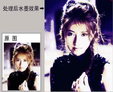编辑点评:这种水墨效果文中只介绍了对软件的滤镜和一些菜单的简单应用,可能在很多细节你还不是很满意,如头发。这里你可手绘的方式进行补救。方法是:在最后一步完成后,在图层面板中新建一层,选用工具箱中的毛笔工具,简单地补充几笔头发。然后在图层模式中选择Soft Light模式,这样水墨效果更明显。其他地方你也可参考此方法。