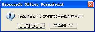 Step1 启动PowerPoint2003,新建一演示文稿。执行“插入→影片中的声音→文件中的声音”命令,打开“插入声音”对话框,选中相应的声音文件,然后按“插入”按钮,并在随后弹出的对话框(图1)中选择“自动”按钮。