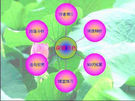 最后,完成其他幻灯片的制作任务,《荷塘月色》演示文稿制作完成。当然,语文课件的制作还有多种多样,广大教师朋友可以举一反三,制作更出色的《荷塘月色》课件。