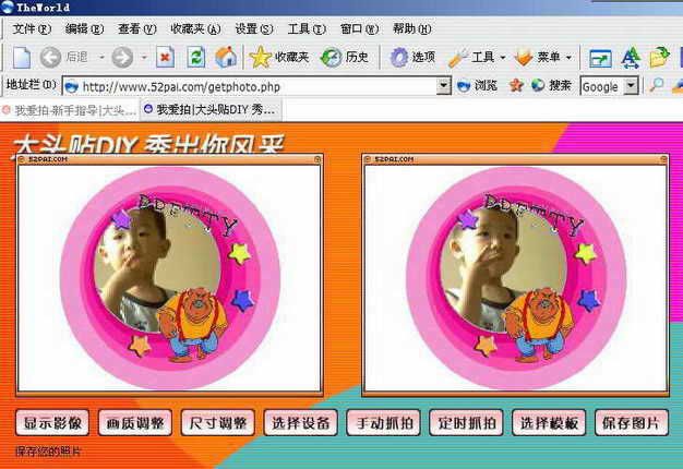 进入这个名叫“我爱拍”的网站首页(地址为http://www.52pai.com),哇,页面上的广告可真撩人──只要有数码相机或者摄像头就可以制作自己的大头贴。呵呵,自己这个百把元的摄像头可要发挥作用了!