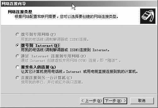 最近笔者在为单位的一台操作系统为Windows 2000的机器建立VPN连接时,发现在“网络连接向导”中,VPN和拨号到专用网络这两个选项为灰色不可选(见图)。