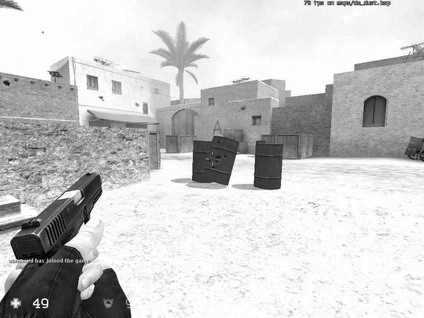同样,当玩家被闪光弹闪盲时,除了有一段时间的耳鸣外,玩家还会看到闪盲前所看到的影像残影。CS1.6里那种将闪光弹扔向身后,闪盲眼前的对手而自己却不会完全丧失视力的做法在这里行不通了。因为在CS:S里,闪光弹即便是在玩家身后爆炸,其变态的威力也能让玩家自己完全致盲。烟雾弹的效果回归到了CS1.5时代,烟雾慢慢散开,烟雾的颜色会随着光线的不同亮度而变化,显得非常真实。游戏中人物会有很真实的影子,而开枪时的火光也很大,这就使得camp变得更加困难。