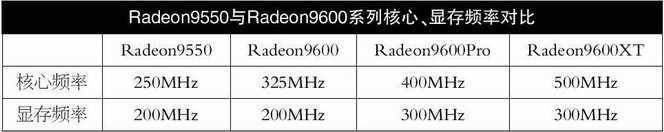 当然,Radeon9550也是一柄双刃剑,在狠狠地斩伤对手的时候也伤了自己,Radeon9550的出现使得Radeon9600系列黯然无光──由于Radeon9550与Radeon9600采用同样的核心,我们可以直接用Radeon9550超频到接近Radeon9600XT的水平,或者直接将它通过刷BIOS改造为Radeon9600Pro/XT,这样可以省下好几百元,何乐而不为?