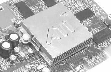 横看,这是一块Radeon9600Pro,竖看,还是一块Radeon9600Pro,取下了GPU的散热片一看,的确是Radeon9600核心。