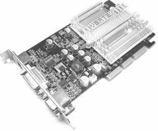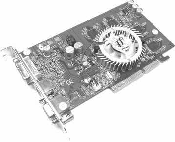 在标准频率下的Radeon9550工作温度比较低,一片普通的散热片就可以搞定它的散热,不过,由于Radeon9550核心普遍可以超到400MHz左右,超频后性能大幅度提升,发热量也随之飚升,只用散热片的被动式散热已经显得不够用了,我们测试中也发现只使用散热片的Radeon 9550在超频后,即便是在裸露平台上,散热片的温度也几乎达到80℃。在温度升高后,Radeon9550的超频能力和稳定性大受影响。