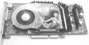 承启GeForce 6800GT显卡,内建16条渲染流水线,完全支持Shader Model 3.0,具有16位浮点纹理处理和32位浮点着色处理能力。该显卡的核心/显存频率为350MHz/1GHz,搭载8颗三星2ns GDDR3显存,组成容量256MB,位宽256bit的显存单元。该显卡仅需要一个外接电源,而且,采用了单槽设计,不会占用AGP槽旁边的PCI挡板位。接口方面,带有D-Sub、DVI和S端子。