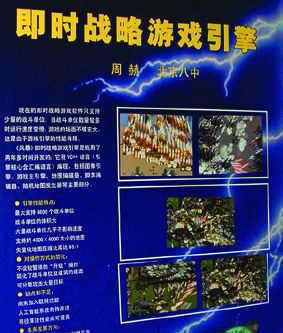 作品介绍:目前很多即时战略游戏只支持少量的战斗单位,当战斗单位较多时,机器运行速度会变慢,游戏的场面不够宏大。《风暴》即时战略游戏引擎是作者用了两年多时间开发的,所采用的程序语言为VC++(引擎核心含汇编语言),《风暴》中包括图像引擎、游戏主引擎、地图编辑器、脚本编辑器、随机地图发生器等主要部分。