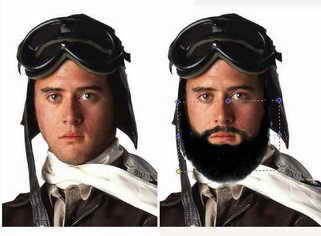 2.加入后先将胡须模板拖到人像面部的合适位置,然后拉动胡须四周外形框的节点来调整大小至合适程度(图3)。