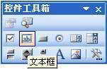 Step1 利用文本框,输入题目(如“Both my brothers______in Italy.”)。执行“视图→工具栏→控件工具箱”,展开“控件工具箱”(图5)。然后点击“文本框”按钮,在幻灯片中拖拉出一个文本框,并将它定位在上述题目的横线上,用于填写答案。