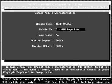 在DOS下运行AMIBCP,程序会提示输入BIOS文件路径,输入完整BIOS文件路径和文件名后选择“Edit BIOS Modules”(BIOS模块编辑),按回车键确认就可以看到组成这个BIOS文件的模块了。我们直接移动光标到31号模块“OEM Logo Date”。先按Del键删除原有图片文件,然后按下“Insert”键,并输入刚才制作好的AMI.BIN文件名。输入后,软件会提示你加入模块的代码类型,可以用“PgUp”或“PgDn”前后转换,调整到“31h OEM Logo Date” (如图8),按“F10”键保存即可。