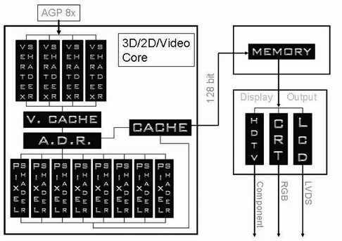 S8具备了8条像素渲染管线,包含成熟的可编程混合着色器(PS2.0+)和可编程色深渲染引擎(PS2.0+),完全支持微软的DX9规范,S3将它们命名为V8引擎,并以此为参与竞争的一个重要制胜法宝。