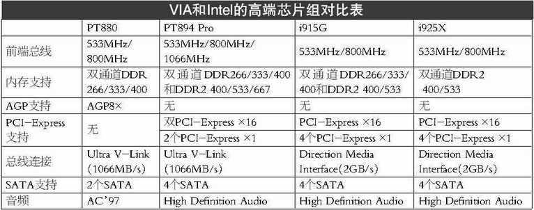 PT894 Pro设想的对手是英特尔今年第四季度将要推出的i925 XE芯片组。i925 XE支持1066MHz前端总线,支持DDR2 400/533。相比之下,PT894 Pro增加了对DDR内存的支持,这无疑将非常受升级用户的欢迎,他们可以让自己的DDR内存继续服役而不是马上升级到DDR2平台。