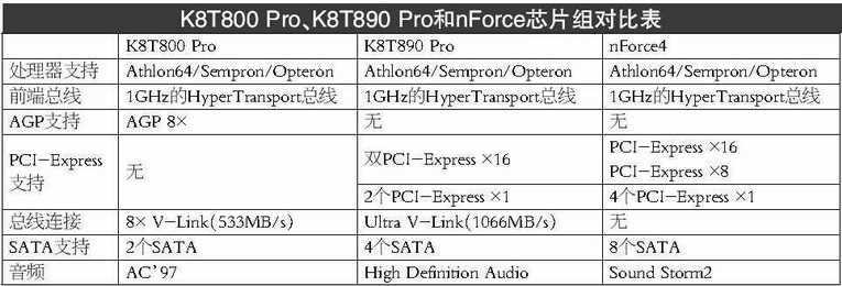 在PT894 Pro发布的同时,威盛也发布了针对AMD市场的PCI-Express芯片组──K8T890 Pro。和K8T800 Pro相比,K8T890 Pro增加了对双PCI-Express ×16的支持,同时通过和VT8251南桥搭配,能够提供两组PCI-Express ×1的接口。