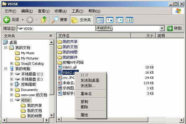 2.由于VDisk的设计思想就是模拟本地硬盘,所以实际操作和在本地硬盘上的操作一样。