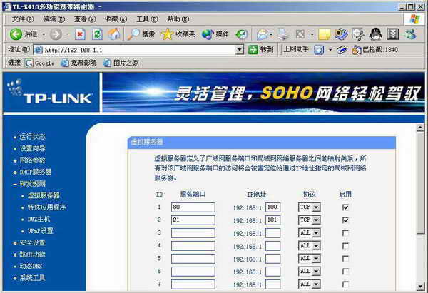 内网用户建个人服务器简单──TL-R410多功能宽带路由器亮点功能试用