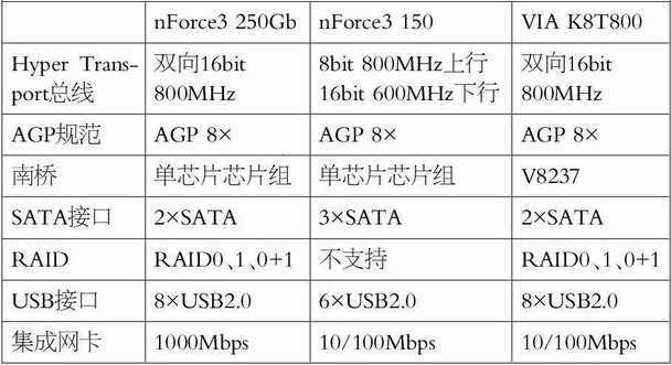 当VIA还与Intel官司缠身的时候,NVIDIA趁机进军主板芯片组市场,推出的nForce2一举占领了AMD K7平台的大部分江山。当AMD进入K8时代后,NVIDIA当然企图仍然保持在AMD平台的领先优势。而实际上NVIDIA的动作不小,它是目前为止惟一一家在K8平台推出了两款芯片组的厂商。由于最早推出的nForce3 150性能平平,NVIDIA赶紧又推出了后续产品nForce3 250系列,包括nForce3 250、nForce3 250Gb和nForce3 Pro 250Gb。nForce3 Pro 250Gb同样采用单芯片组设计,支持千兆以太网和硬件防火墙,同时还首次支持SATA和PATA硬盘组成混合RAID模式。