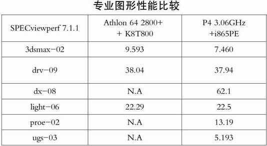 这套Athlon 64位平台一扫颓势,性能可与另外一套P4系统看齐,在办公应用上的表现比P4系统还要强。只是在多媒体性能上,与P4系统还有差距。专业的图形处理能力这套系统也有大幅提高。这也可以看出,对于专业的图形处理用户,选择一款适合图形处理而不是游戏的显卡有多重要。