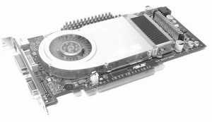 NV45尚未正式发布,不过,我们已在第一时间拿到了华硕的NV45显卡EN6800Ultra的工程样品。这块显卡是P211公版的改版,深蓝色PCB板,带有华硕特有针状散热器和蓝色炫彩风扇,挡板也为单槽设计,外形上同基于NV40核心的华硕V9999系列显卡极为相似。不过,这块显卡的电源接口为6孔式,而且只有一个电源接口,另外,在卡的上部,还有一个神秘的金手指接口。这个接口是做什么用的呢?NV45显卡的性能又如何呢?