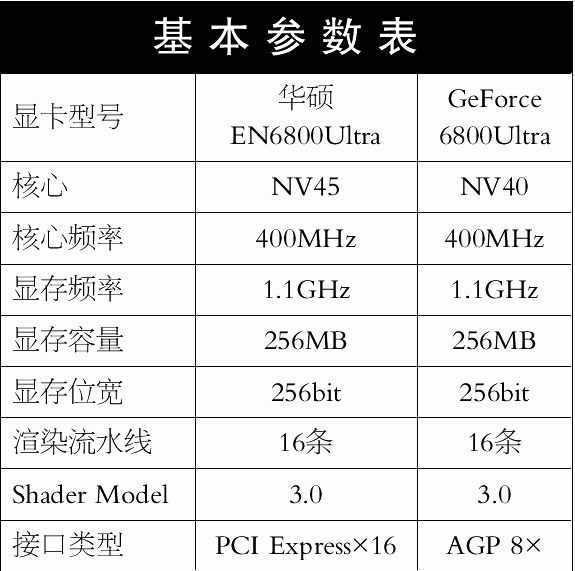 在本文截稿时,我们得到华硕透露的消息,它们的NV45显卡EN6800Ultra最终上市时,核心/显存频率会达到425MHz/1.1GHz。
