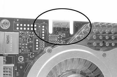 从基本参数表中,大家可以发现,这块显卡的核心/显存频率为400MHz/1.1GHz,和AGP接口的GeForce 6800Ultra的核心/显存频率相同,而且,其他指标也都相同,难道这块NV45显卡仅仅是“PCI Express版的GeForce 6800Ultra”吗?不!至少NVIDIA已为它加入了一个独特的功能──SLI。想必使用过Voodoo2显卡的朋友对这个功能不会感到陌生。当年Voodoo2显卡便提供了SLI功能,通过把两块显卡连接在一起,实现图形处理能力的倍增。而NV45显卡也带有SLI功能,只不过,这一SLI的实现机制与Voodoo2的SLI完全不同,它是一种全数字的方式,通过一块PCB电路板,将两块完全相同的显卡连接起来并行工作,以倍增系统的整体图形处理能力。EN6800Ultra上那个神秘的金手指接口,就是SLI的接口。两块显卡以SLI方式连接后,实际效能能够达到单块卡的1.87倍!