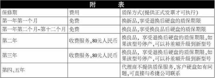 同时雷射提供了非常详细的希捷硬盘5年质保条例文档。(见附表)