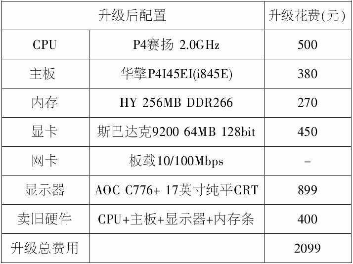 升级要求:能够流畅地运行WinXP操作系统,流畅地玩主流的网游,升级费用不超过1500元。