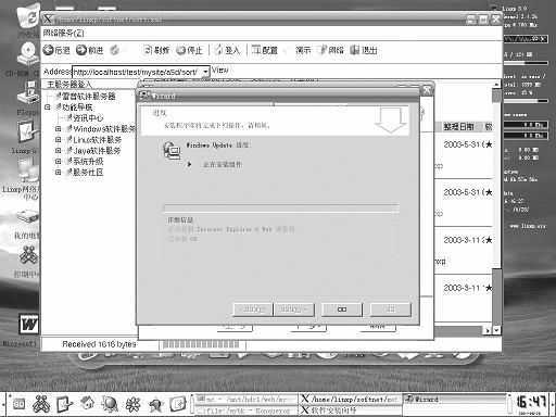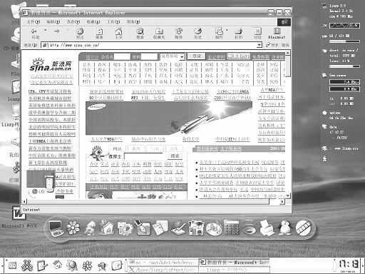图6是在该系统下使用真正的IE进行网络浏览的情况,如此熟悉功能又强大的软件也能用在Linux环境中,建议大家有需要的可以按装多系统的方法装一个该系统以满足在Linux环境中的特殊需要。