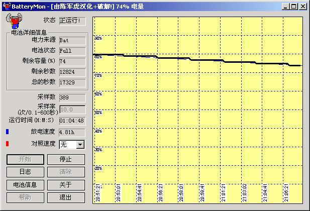 BatteryMon身材较小巧,它可以让用户了解到电池的额定容量、满充容量,电池充放电的速率以及放电的平稳程度(右图),从这些数据中用户可以知道电池状态是否良好。要特别注意的是,显示的满充容量不应小于额定容量很多,否则电池性能肯定不佳。