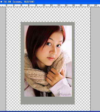第二步:在Layers(图层)调板中,单击底部的New Layer(新图层)图标,创建一个新的空白图层。使用Rectangular Marquee(矩形选框)工具,围绕图像绘制一个选区,顶部和两边各多出0.5厘米,底部多出1厘米(具体数值可灵活掌握),选择极淡的灰色作为前景色。按下“Alt+Back Space”组合键使用前景色填充选区(图3)。
