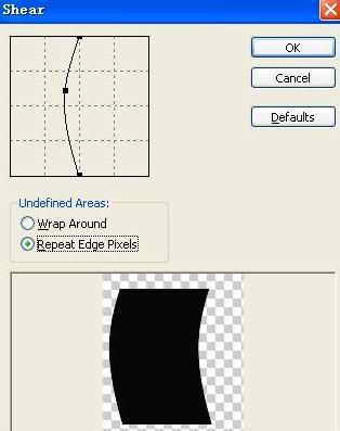 第四步:选择黑色图层。点菜单“Filter(滤镜)→Distort(扭曲)→Shear(切变)”在弹出的对话框中做如图4所示的设置,点“OK”结束。