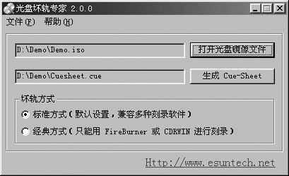 第三步:刻录镜像文件。经笔者实验,如果用CDRWin来刻录,有时候无法打开生成的Cuesheet.cue文件,因此这里推荐使用FireBurner来刻录镜像文件。打开“文件”菜单下的“打开Cuesheet”项,导入第二步中生成的Cuesheet.cue文件,然后点击“刻录光盘”菜单下的“刻录”项,即可完成加密盘的制作。FireBurne2.2.1汉化版的下载地址:http://www.esuntech.net/gphy/download/FireBurner.exe。