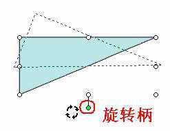 Step3 选中该三角形,单击工具栏上的“绘图”按钮,选择“旋转或翻转、垂直翻转”,将该三角形翻转一下。再选中该三角形,按住“旋转柄”(图3)将它顺时针旋转一个小角度,使其斜边成水平状态(与幻灯片下边平行)。